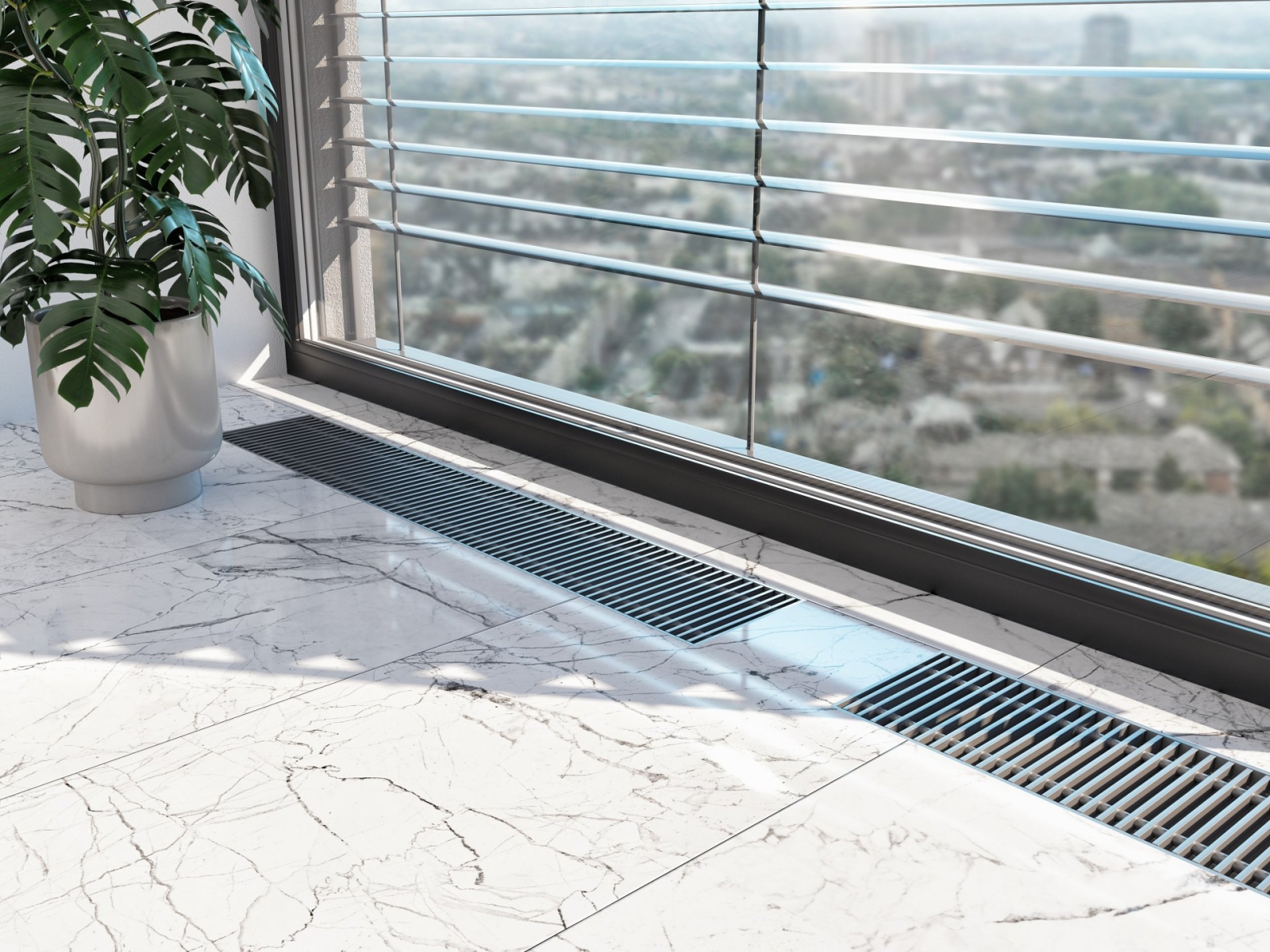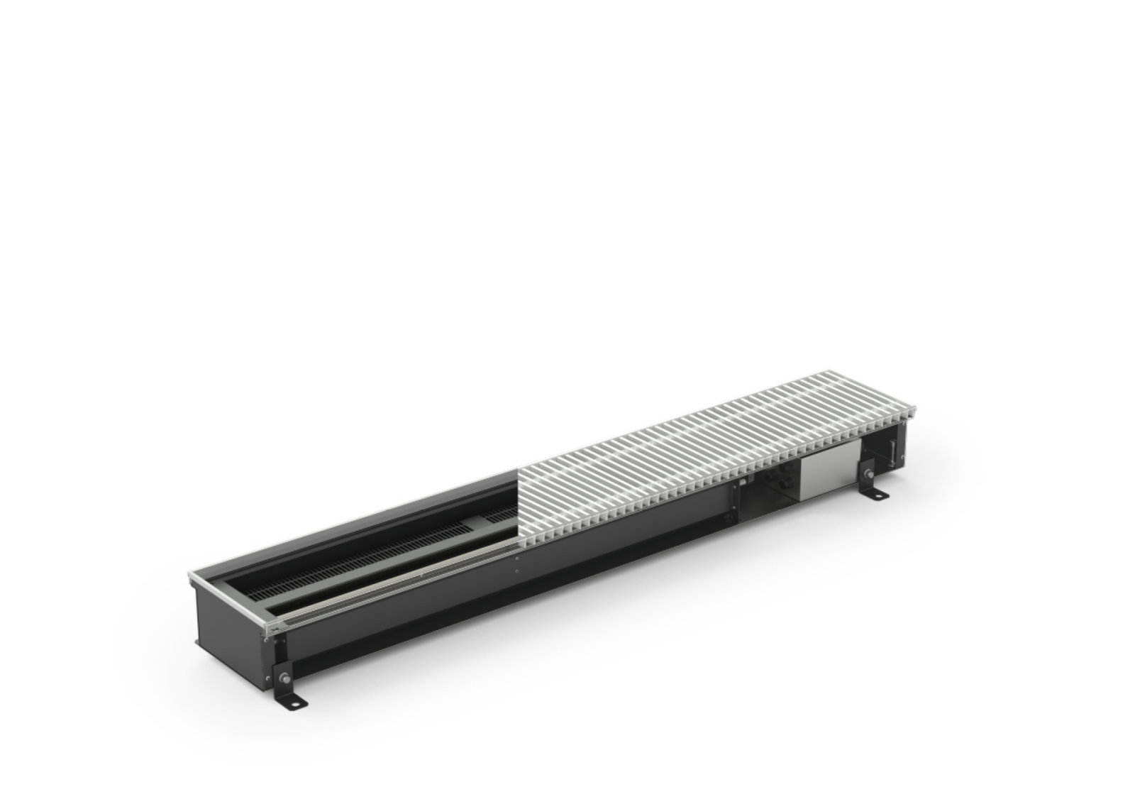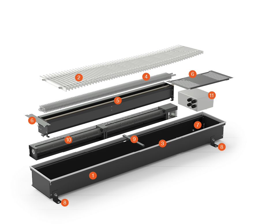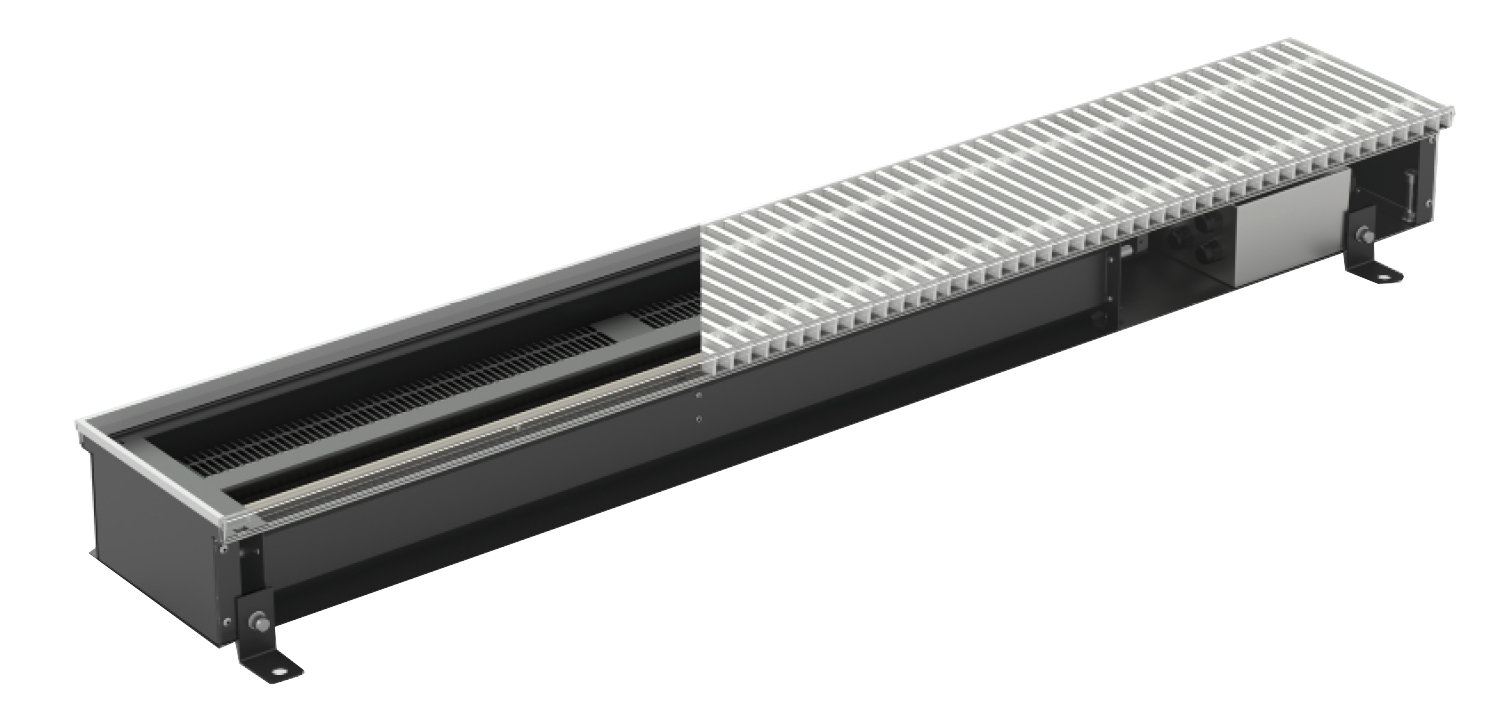 KORAFLEX Amper FVA (230 V AC) is a fully electric floor convector with aluminium elox grille, which achieves high heating performance and rapid heat transfer to the room and contains – a powerful electric heat exchanger and an EC tangential fan. Reliable regulation then guarantees simple and safe operation. The trench heater has its own heating system independent from the central heating system and does not contain a heat exchanger for hot water heating. The floor convector is compact in size and is suitable wherever there is no possibility of connecting to the heating system. We recommend placing the KORAFLEX Amper FVA near large glazed areas and it is also suitable for fully electric or modern low-energy houses. Given the possibility of additional installation, it is also suitable for renovations where there is no longer the possibility of connecting to the heating water distribution. It is a fast, quiet and economical heating, which thanks to high thermal performance can be installed as a main or secondary (backup) heat source, or as an alternative to standard heating.
